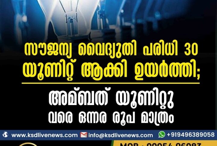 കേരളം സൗജന്യ വൈദ്യുതി പരിധി 30 യൂണിറ്റ് ആക്കി ഉയര്ത്തി; അമ്ബത് യൂണിറ്റുവരെ ഒന്നര രൂപ മാത്രംNovember 18, 2021