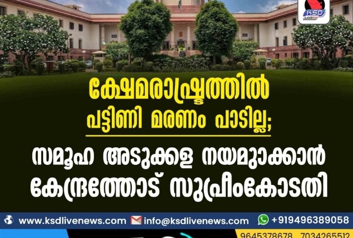 ദേശീയം ക്ഷേമരാഷ്ട്രത്തിൽ പട്ടിണിമരണം പാടില്ല; സമൂഹ അടുക്കള നയമുണ്ടാക്കാൻ കേന്ദ്രത്തോട് സുപ്രീംകോടതിNovember 17, 2021