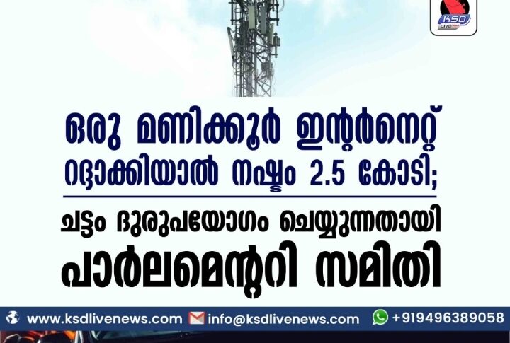 ദേശീയം ഒരു മണിക്കൂർ ഇന്റർനെറ്റ് റദ്ദാക്കിയാൽ നഷ്ടം 2.5 കോടി; ചട്ടം ദുരുപയോഗം ചെയ്യുന്നതായി പാർലമെന്ററിസമിതിNovember 17, 2021