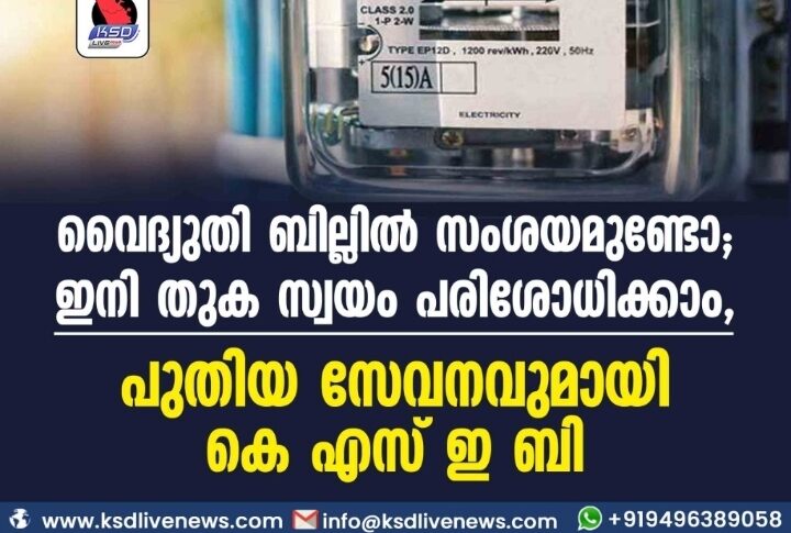 കേരളം വൈദ്യുതി ബില്ലില് സംശയമുണ്ടോ; ഇനി തുക സ്വയം പരിശോധിക്കാം, പുതിയ സേവനവുമായി കെ എസ് ഇ ബിNovember 15, 2021
