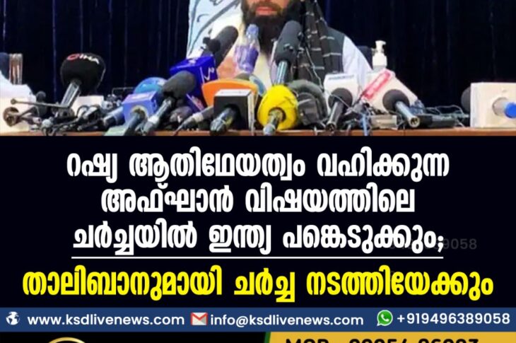 ദേശീയം റഷ്യ ആതിഥേയത്വം വഹിക്കുന്ന അഫ്ഘാന് വിഷയത്തിലെ ചര്ച്ചയില് ഇന്ത്യ പങ്കെടുക്കും, താലിബാനുമായി ചര്ച്ച നടത്തിയേക്കുംOctober 15, 2021