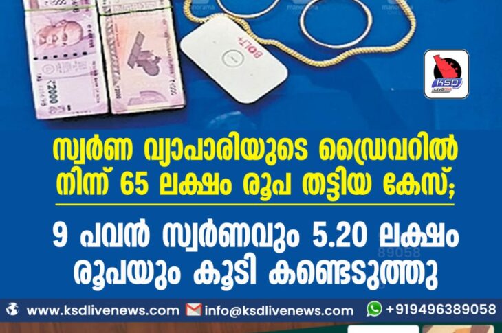 കാസർഗോഡ് സ്വർണ വ്യാപാരിയുടെ ഡ്രൈവറിൽ നിന്ന് 65 ലക്ഷം രൂപ തട്ടിയ കേസ് : 9 പവൻ സ്വർണവും 5.20 ലക്ഷം രൂപയും കൂടി കണ്ടെടുത്തുOctober 21, 2021