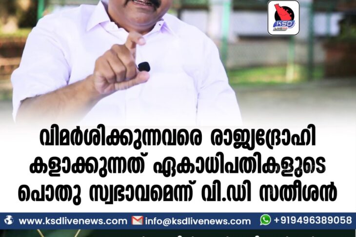 കേരളം വിമര്ശിക്കുന്നവരെ രാജ്യദ്രോഹികളാക്കുന്നത് ഏകാധിപതികളുടെ പൊതുസ്വഭാവമെന്ന് വി.ഡി സതീശന്October 13, 2021