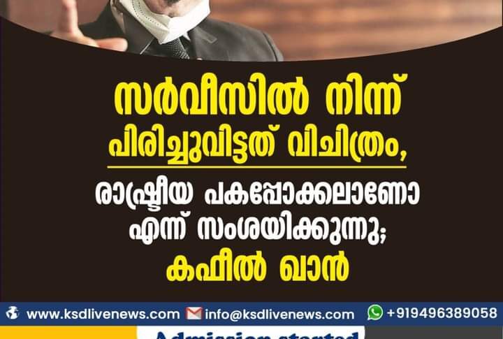 ദേശീയം സർവീസിൽ നിന്ന് പിരിച്ചു വിട്ടത് വിചിത്രം, രാഷ്ട്രീയ പകപ്പോക്കലാണോ എന്ന് സംശയിക്കുന്നു: കഫീൽ ഖാൻNovember 11, 2021
