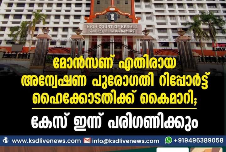 കേരളം മോൻസണ് എതിരായ അന്വേഷണ പുരോഗതി റിപ്പോർട്ട് ഹൈക്കോടതിക്ക് കൈമാറി; കേസ് ഇന്ന് പരിഗണിക്കുംNovember 11, 2021