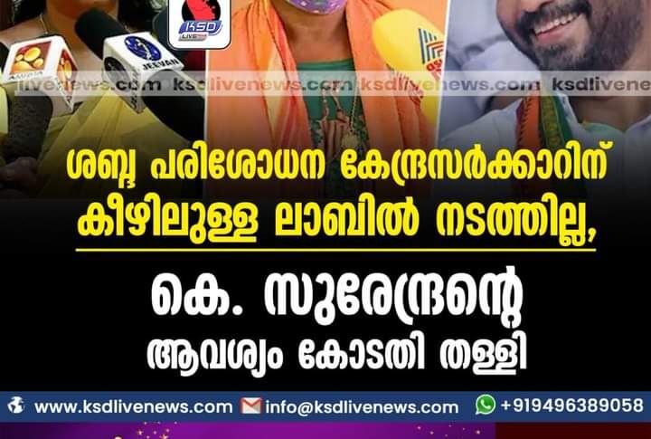 കേരളം ശബ്ദ പരിശോധന കേന്ദ്ര സർക്കാറിന് കീഴിലുള്ള ലാബിൽ നടത്തില്ല, കെ സുരേന്ദ്രന്റെ ആവശ്യം കോടതി തള്ളിNovember 10, 2021