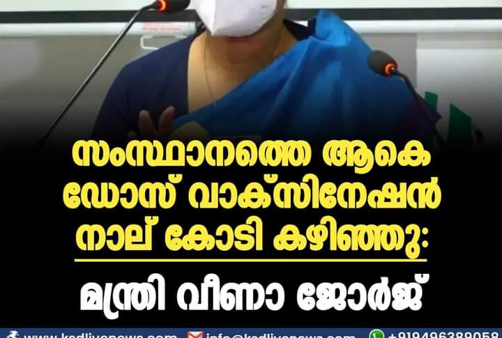സംസ്ഥാനത്തെ ആകെ ഡോസ് വാക്സിനേഷന് നാല് കോടി കഴിഞ്ഞു: മന്ത്രി വീണാ ജോര്ജ്