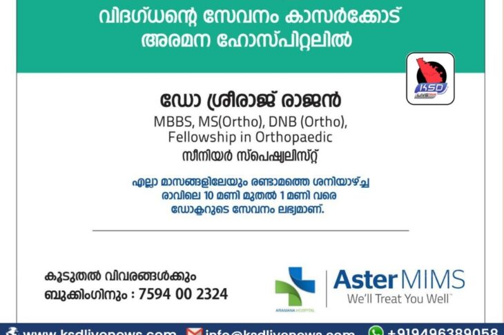 കാസർഗോഡ് ആസ്റ്റർ മിംസ് ആശുപത്രിയിലെ ഓങ്കോ ഓർത്തോ (കാൻസർ)വിഭാഗം ഇനി കാസറഗോഡ് അരമന ഹോസ്പിറ്റലിൽNovember 8, 2021