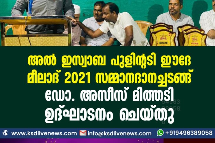 പ്രാദേശികം അൽ ഇസ്വാബ പുളിന്റടി ഈദേ മീലാദ് 2021 സമ്മാനദാനച്ചടങ്ങ് ഡോ.അസീസ് മിത്തടി ഉദ്ഘാടനം ചെയ്തു.November 8, 2021
