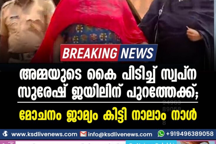 കേരളം അമ്മയുടെ കൈ പിടിച്ച് സ്വപ്ന സുരേഷ് ജയിലിന് പുറത്തേക്ക്; മോചനം ജാമ്യം കിട്ടി നാലാം നാൾNovember 6, 2021