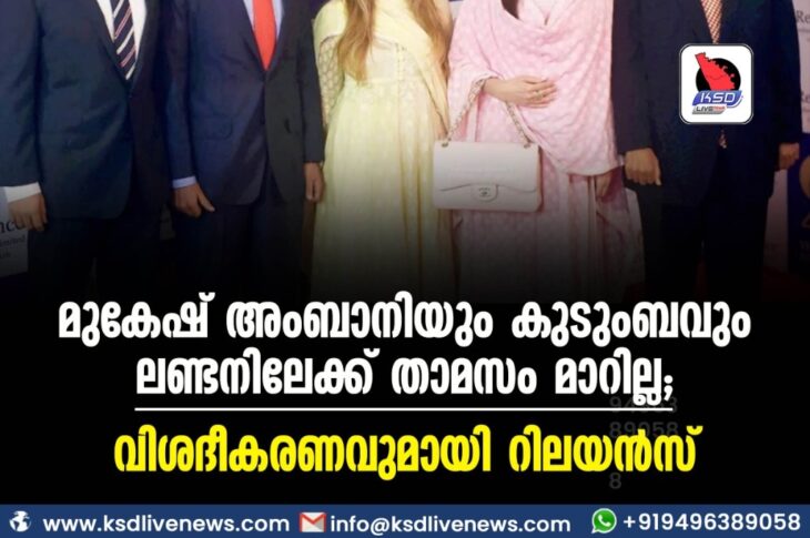 ദേശീയം മുകേഷ് അംബാനിയും കുടുംബവും ലണ്ടനിലേക്ക് താമസം മാറില്ല; വിശദീകരണവുമായി റിലയന്സ്November 6, 2021