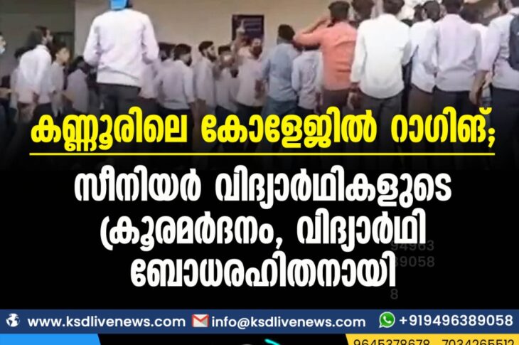 കേരളം കണ്ണൂരിലെ കോളേജില് റാഗിങ്; സീനിയര് വിദ്യാര്ഥികളുടെ ക്രൂരമര്ദനം, വിദ്യാര്ഥി ബോധരഹിതനായിNovember 6, 2021