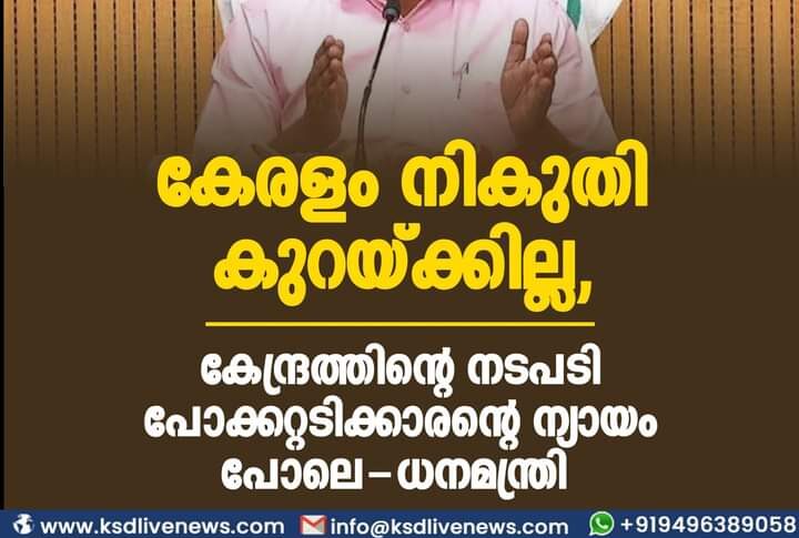 കേരളം കേരളം നികുതി കുറയ്ക്കില്ല, കേന്ദ്രത്തിന്റെ നടപടി പോക്കറ്റടിക്കാരന്റെ ന്യായം പോലെ – ധനമന്ത്രിNovember 4, 2021