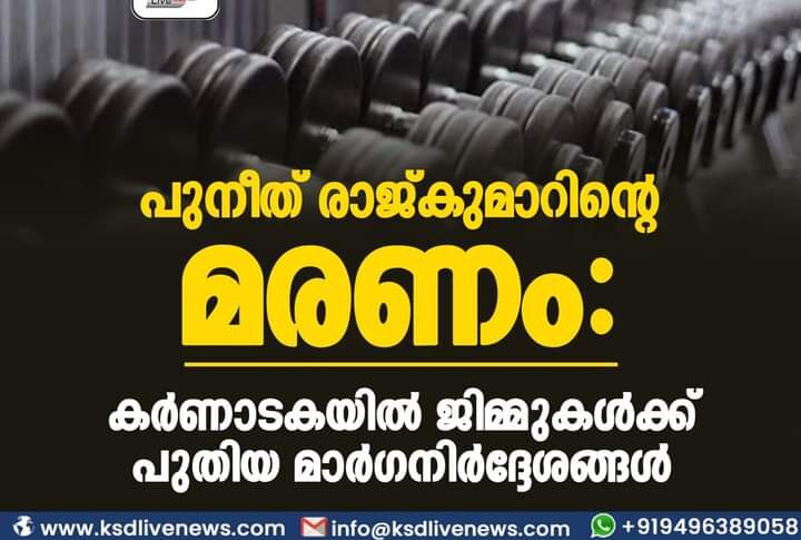 കേരളം പുനീത് രാജ്കുമാറിന്റെ മരണം: കര്ണാടകയില് ജിമ്മുകള്ക്ക് പുതിയ മാര്ഗനിര്ദ്ദേശങ്ങള്November 4, 2021