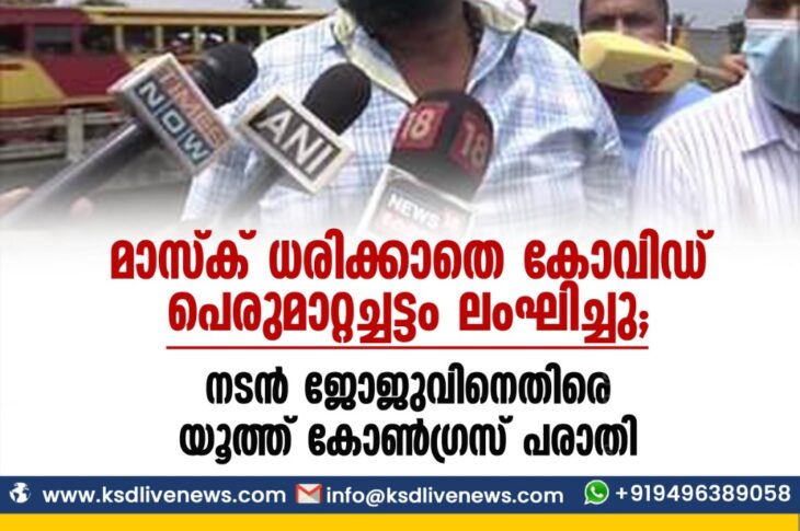 കേരളം മാസ്ക് ധരിക്കാതെ കോവിഡ് പെരുമാറ്റച്ചട്ടം ലംഘിച്ചു’; നടന് ജോജുവിനെതിരെ യൂത്ത് കോണ്ഗ്രസ് പരാതിNovember 4, 2021