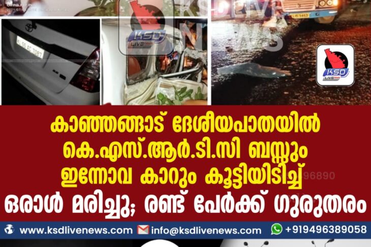 പ്രാദേശികം കാഞ്ഞങ്ങാട് ദേശീയപാതയിൽ കെ.എസ്.ആര്.ടി.സി ബസ്സും ഇന്നോവ കാറും കൂട്ടിയിടിച്ച് ഒരാള് മരിച്ചു; രണ്ട് പേര്ക്ക് ഗുരുതരംJuly 5, 2021