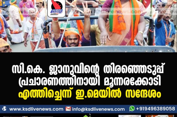 കേരളം സി.കെ. ജാനുവിന്റെ തിരഞ്ഞെടുപ്പ് പ്രചാരണത്തിനായി മൂന്നരക്കോടി എത്തിച്ചെന്ന് ഇ.മെയിൽ സന്ദേശംJuly 5, 2021