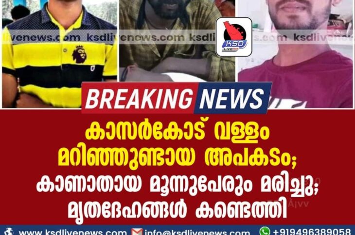 കാസർഗോഡ് കാസര്കോട് വള്ളം മറിഞ്ഞുണ്ടായ അപകടം; കാണാതായ മൂന്നുപേരും മരിച്ചു, മൃതദേഹങ്ങള് കണ്ടെത്തിJuly 5, 2021