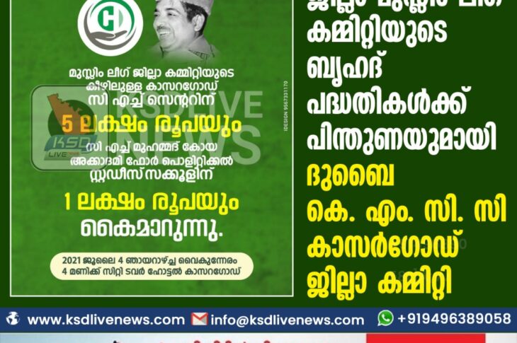 പ്രാദേശികം ജില്ലാ മുസ്ലിം ലീഗ് കമ്മിറ്റിയുടെ ബൃഹദ് പദ്ധതികൾക്ക് പിന്തുണയുമായി ദുബൈ കെ. എം. സി. സി കാസർഗോഡ് ജില്ലാ കമ്മിറ്റിJuly 4, 2021
