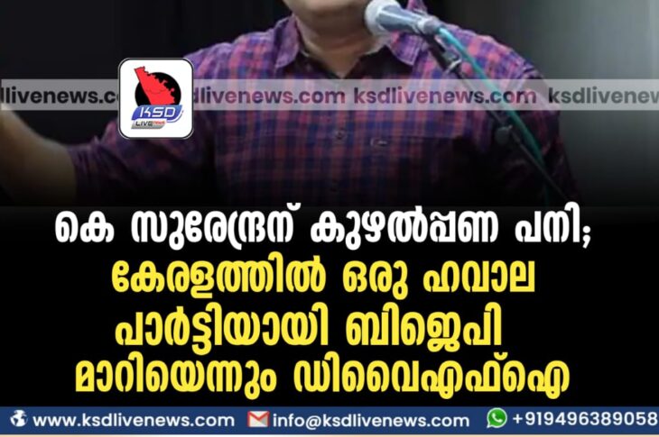 കേരളം കെ സുരേന്ദ്രന് കുഴൽപ്പണ പനി; കേരളത്തിൽ ഒരു ഹവാല പാർട്ടിയായി ബിജെപി മാറിയെന്നും ഡിവൈഎഫ്ഐJuly 3, 2021