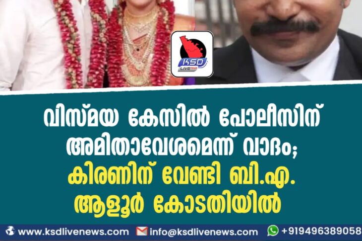 കേരളം വിസ്മയ കേസില് പോലീസിന് അമിതാവേശമെന്ന് വാദം; കിരണിന് വേണ്ടി ബി.എ. ആളൂര് കോടതിയില്July 3, 2021