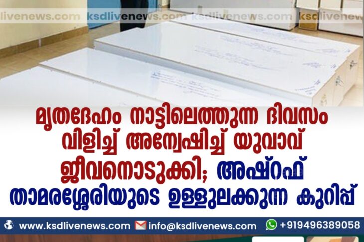 കേരളം മൃതദേഹം നാട്ടിലെത്തുന്ന ദിവസം വിളിച്ച് അന്വേഷിച്ച് യുവാവ് ജീവനൊടുക്കി -അഷ്റഫ് താമരശ്ശേരിയുടെ ഉള്ളുലക്കുന്ന കുറിപ്പ്July 2, 2021