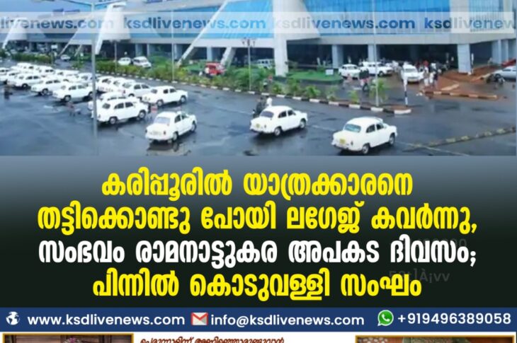 കേരളം കരിപ്പൂരിൽ യാത്രക്കാരനെ തട്ടിക്കൊണ്ടുപോയി ലഗേജ് കവർന്നു, സംഭവം രാമനാട്ടുകര അപകട ദിവസം; പിന്നിൽ കൊടുവള്ളി സംഘംJuly 2, 2021