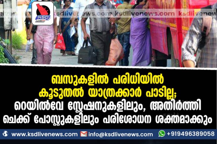 കേരളം ബസുകളില് പരിധിയില് കൂടുതല് യാത്രക്കാര് പാടില്ല; റെയില്വേ സ്റ്റേഷനുകളിലും, അതിര്ത്തി ചെക്ക്പോസ്റ്റുകളിലും പരിശോധന ശക്തമാക്കുംJune 29, 2021