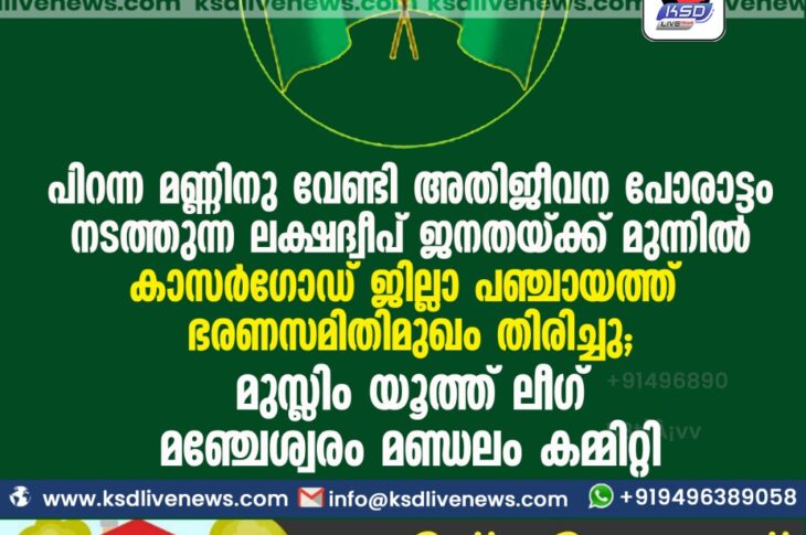 കാസർഗോഡ് പിറന്ന മണ്ണിനു വേണ്ടി അതിജീവന പോരാട്ടം നടത്തുന്ന ലക്ഷദ്വീപ് ജനതയ്ക്ക് മുന്നിൽ കാസർഗോഡ് ജില്ലാ പഞ്ചായത്ത് ഭരണസമിതി മുഖം തിരിച്ചു -മുസ്ലിം യൂത്ത് ലീഗ് മഞ്ചേശ്വരം മണ്ഡലം കമ്മിറ്റിJune 29, 2021