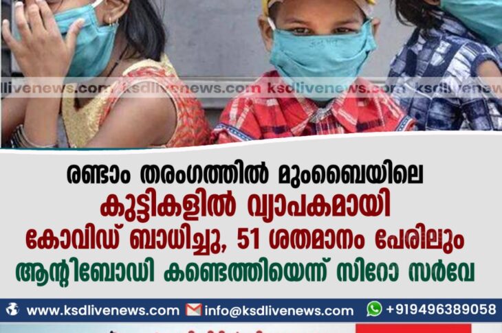 ദേശീയം രണ്ടാംതരംഗത്തില് മുംബൈയിലെ കുട്ടികളില് വ്യാപകമായി കോവിഡ് ബാധിച്ചു; 51 ശതമാനം പേരിലും ആന്റിബോഡി കണ്ടെത്തിയെന്ന് സിറോ സര്വേJune 28, 2021