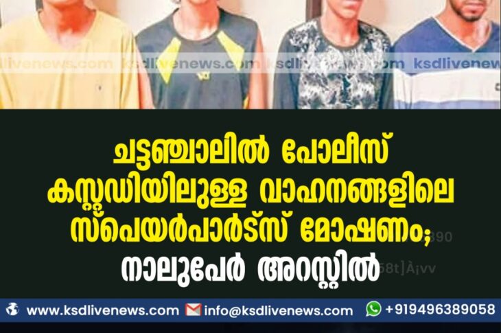 പ്രാദേശികം ചട്ടഞ്ചാലിൽ പോലീസ് കസ്റ്റഡിയിലുള്ള വാഹനങ്ങളിലെ സ്പെയർപാർട്സ് മോഷണം; നാലുപേർ അറസ്റ്റിൽJune 28, 2021