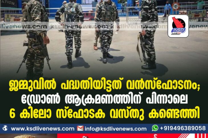 ദേശീയം ജമ്മുവില് പദ്ധതിയിട്ടത് വന്സ്ഫോടനം; ഡ്രോണ് ആക്രമണത്തിന് പിന്നാലെ 6 കിലോ സ്ഫോടക വസ്തു കണ്ടെത്തിJune 27, 2021