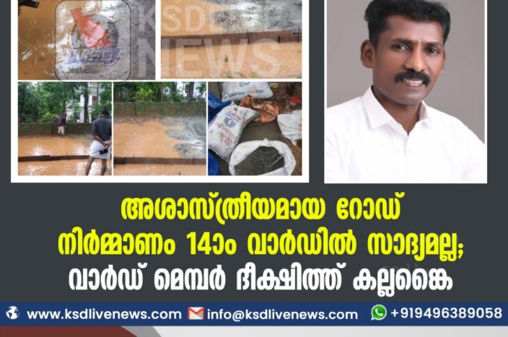 പ്രാദേശികം അശാസ്ത്രീയമായ റോഡ് നിർമ്മാണം 14-ാം വാർഡിൽ സാദ്യമല്ല; വാർഡ് മെമ്പർ ദീക്ഷിത്ത് കല്ലങ്കൈ.June 21, 2021