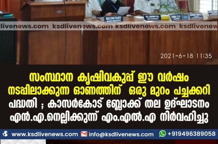 കാസർഗോഡ് സംസ്ഥാന കൃഷിവകുപ്പ്ഈ വർഷം നടപ്പിലാക്കുന്ന ഓണത്തിന് ഒരു മുറം പച്ചക്കറി പദ്ധതി ; കാസർകോട് ബ്ലോക്ക് തല ഉദ്ഘാടനം എൻ . എ .നെല്ലിക്കുന്ന് എം.എൽ.എ നിർവഹിച്ചുJune 18, 2021