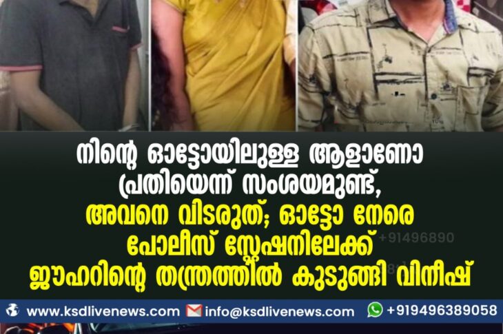 കേരളം ‘നിന്റെ ഓട്ടോയിലുള്ള ആളാണോ പ്രതിയെന്ന് സംശയമുണ്ട്, അവനെ വിടരുത്’; ഓട്ടോ നേരെ പോലീസ് സ്റ്റേഷനിലേക്ക്, ജൗഹറിന്റെ തന്ത്രത്തില് കുടുങ്ങി വിനീഷ്June 18, 2021