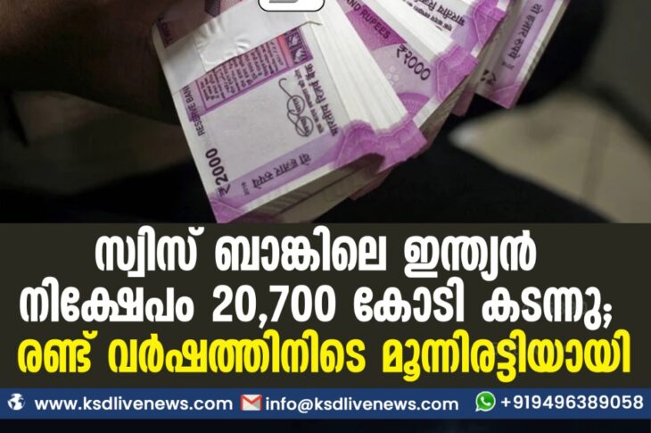 ദേശീയം സ്വിസ് ബാങ്കിലെ ഇന്ത്യന് നിക്ഷേപം 20,700 കോടി കടന്നു; രണ്ട് വര്ഷത്തിനിടെ മൂന്നിരട്ടിയായിJune 18, 2021