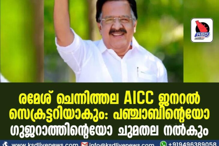 ദേശീയം രമേശ് ചെന്നിത്തല AICC ജനറല് സെക്രട്ടറിയാകും: പഞ്ചാബിന്റെയോ ഗുജറാത്തിന്റെയോ ചുമതല നല്കുംJune 18, 2021
