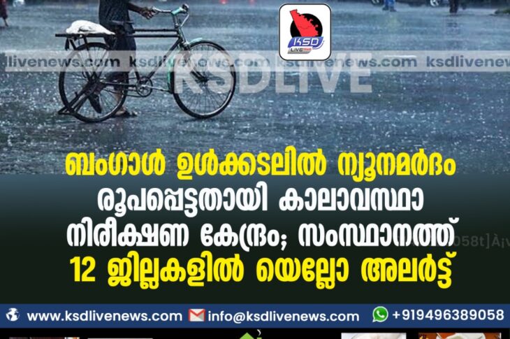 കേരളം ബംഗാള് ഉള്ക്കടലില് ന്യൂനമര്ദം രൂപപ്പെട്ടതായി കാലാവസ്ഥാ നിരീക്ഷണ കേന്ദ്രം; സംസ്ഥാനത്ത് 12 ജില്ലകളില് യെല്ലോ അലര്ട്ട്June 13, 2021