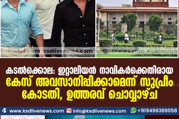 ദേശീയം കടൽക്കൊല: ഇറ്റാലിയൻ നാവികർക്കെതിരായ കേസ് അവസാനിപ്പിക്കാമെന്ന് സുപ്രീം കോടതി, ഉത്തരവ് ചൊവ്വാഴ്ചJune 11, 2021