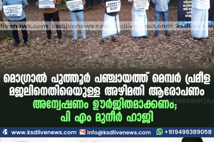 പ്രാദേശികം ബി ജെ പി പഞ്ചായത്ത് മെമ്പർ പ്രമീളയ്ക്കെതിരെയുള്ള അഴിമതി ആരോപണം അന്വേഷണം ഊർജ്ജിതമാക്കണം : പി എം മുനീർ ഹാജി കമ്പാർJune 9, 2021
