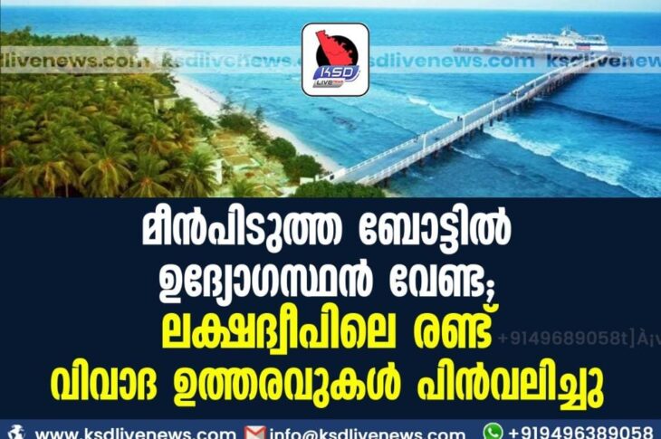 ദേശീയം മീൻപിടുത്ത ബോട്ടിൽ ഉദ്യോഗസ്ഥൻ വേണ്ട; ലക്ഷദ്വീപിലെ രണ്ട് വിവാദ ഉത്തരവുകള് പിന്വലിച്ചുJune 9, 2021