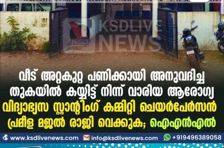 കാസർഗോഡ് വീട് അറ്റകുറ്റ പണിക്കായി അനുവദിച്ച തുകയിൽ നിന്ന് കയ്യിട്ട് വാരിയ ആരോഗ്യ വിദ്യാഭ്യസ സ്റ്റാന്റിംഗ് കമ്മിറ്റി ചെയർപേർസൻ പ്രമീള മജൽ രാജി വെക്കുക: ഐഎൻഎൽJune 6, 2021
