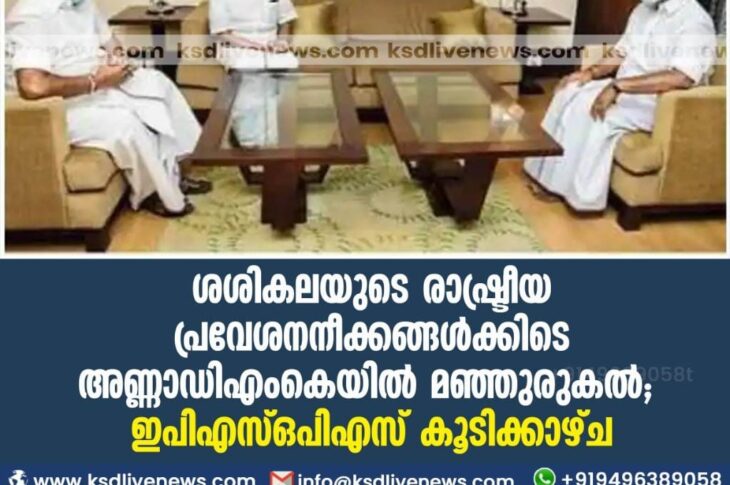 ദേശീയം ശശികലയുടെ രാഷ്ട്രീയ പ്രവേശനനീക്കങ്ങൾക്കിടെ അണ്ണാഡിഎംകെയിൽ മഞ്ഞുരുകൽ; ഇപിഎസ്-ഒപിഎസ് കൂടിക്കാഴ്ചJune 6, 2021