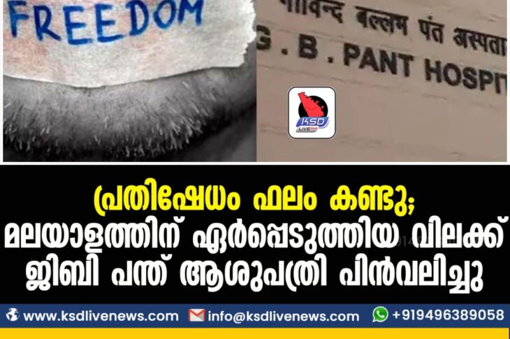 ദേശീയം പ്രതിഷേധം ഫലം കണ്ടു; മലയാളത്തിന് ഏര്പ്പെടുത്തിയ വിലക്ക് ജിബി പന്ത് ആശുപത്രി പിന്വലിച്ചുJune 6, 2021