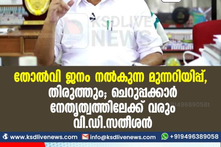 കേരളം തോല്വി ജനം നല്കുന്ന മുന്നറിയിപ്പ്, തിരുത്തും; ചെറുപ്പക്കാര് നേതൃത്വത്തിലേക്ക് വരും-വി.ഡി.സതീശന്June 5, 2021