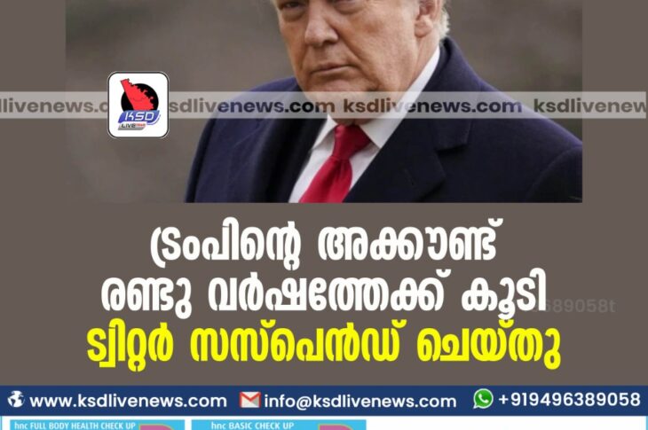 ട്രംപിന്റെ അക്കൗണ്ട് രണ്ടുവര്ഷത്തേക്ക് ട്വിറ്റര് സസ്പെന്ഡ് ചെയ്തു