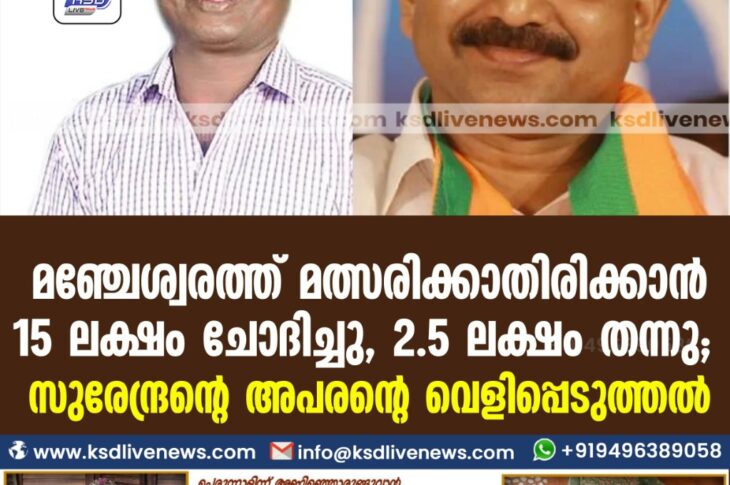 കേരളം മഞ്ചേശ്വരത്ത് മത്സരിക്കാതിരിക്കാന് 15 ലക്ഷം ചോദിച്ചു, 2.5 ലക്ഷം തന്നു: സുരേന്ദ്രന്റെ അപരന്റെ വെളിപ്പെടുത്തല്June 5, 2021